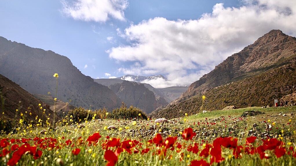 Aufenthalt in der orientalischen Stadt Marrakech, Fahrt über Azilal in den Hohen Atlas. Wandern durch Felder zum ersten Camp bei Ait Imi. 9 Tage Rundwanderung mit Maultieren als Lasttiere im Zentralen Hohen Atlas, fakultative Besteigung des M’Goun, Fahrt durch eine wilde Landschaft nach Azilal und weiter nach Marrakech.