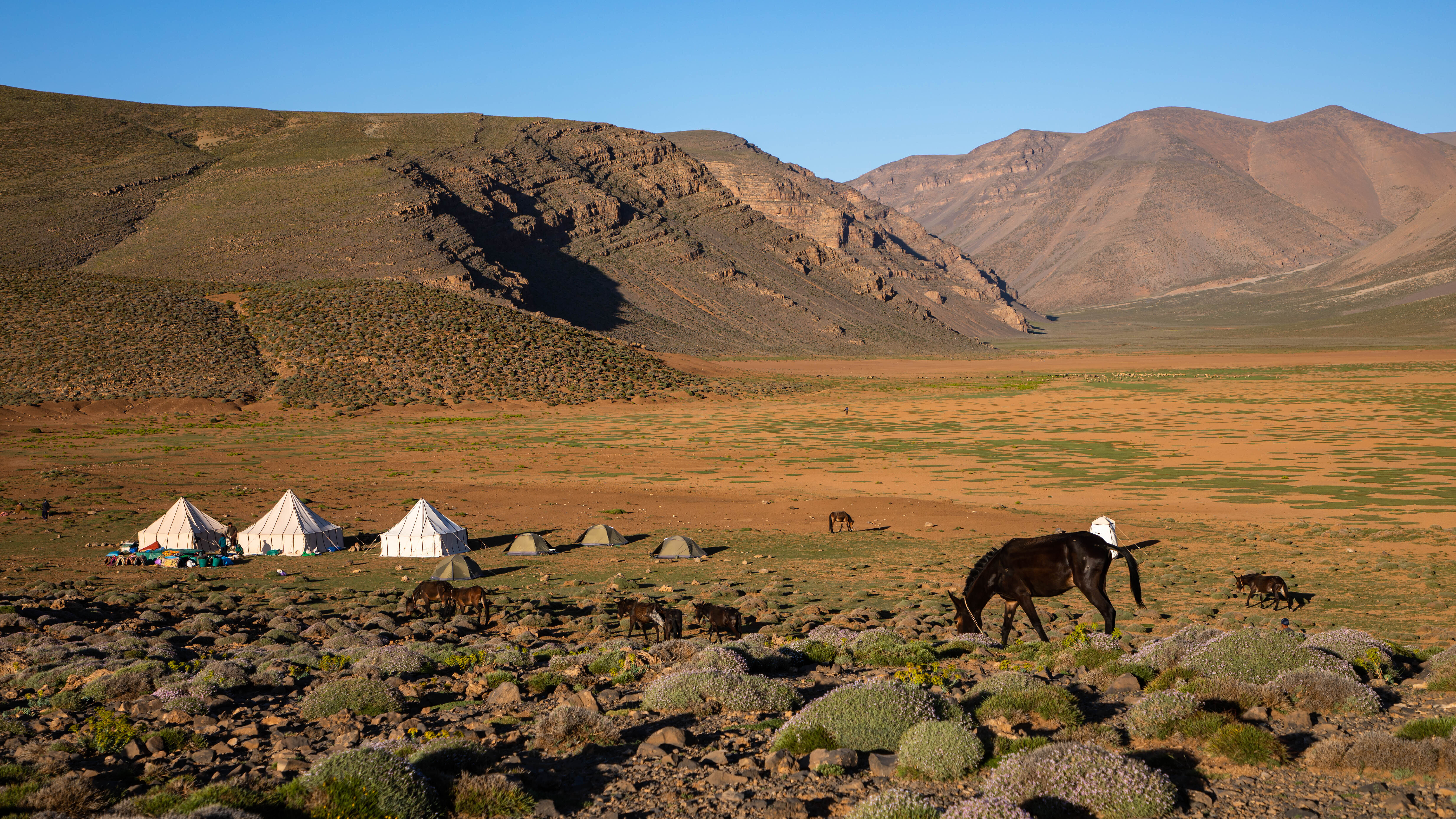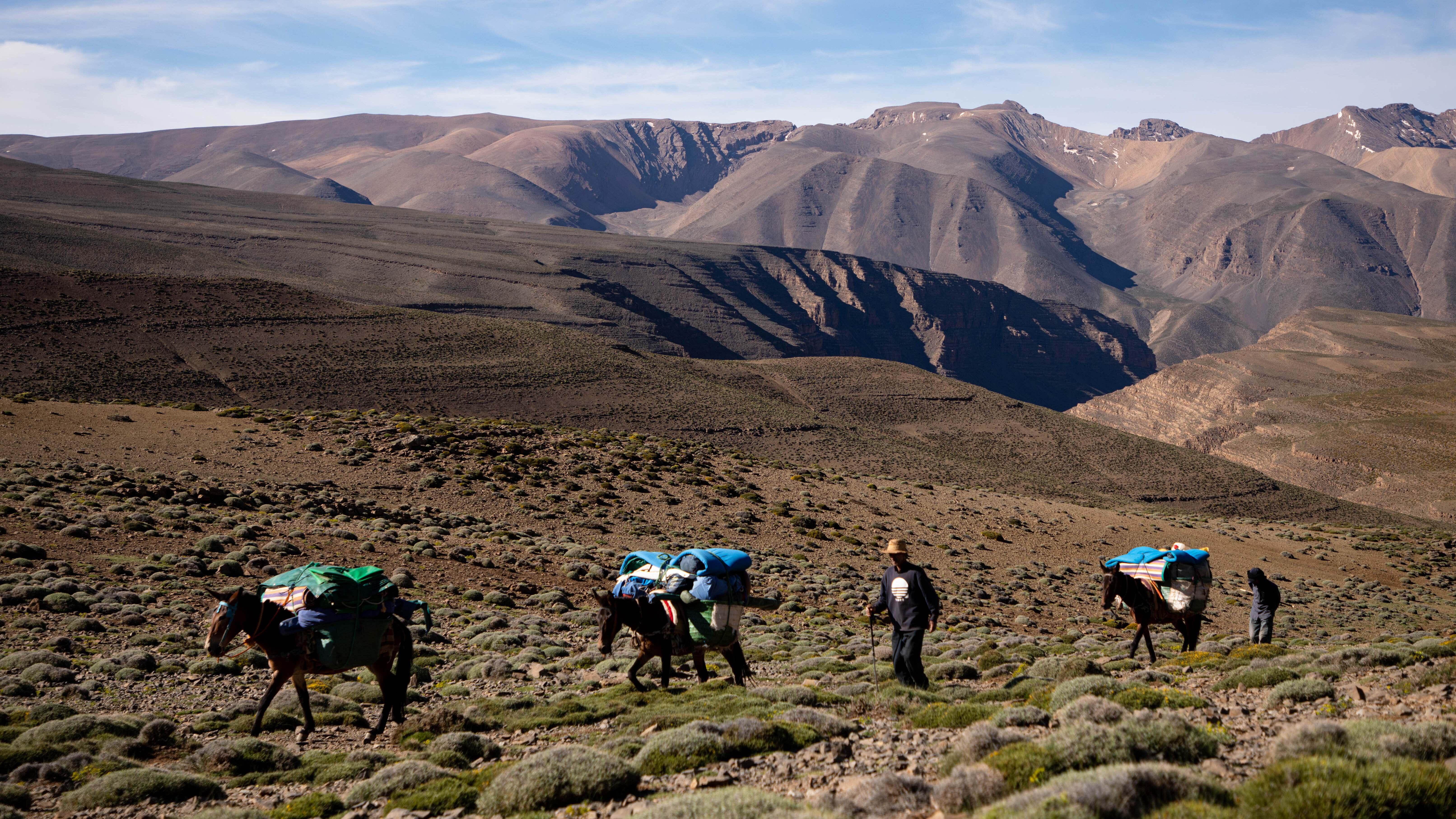 Auf uralten Pfaden wandern wir vom Jebel Rat zu den Hochebenen und Südhängen südlich des M’Goun. Grandiose Landschaften und die rote Erde des Tassaout Tales beeindrucken uns genauso, wie die Herzlichkeit der Begleitequipe aus dem Ait Bougmez und die Schlichtheit der Nomadenzelte auf den Alpen. Tag für Tag geniessen das Verwöhnt werden genauso wie die majestätische Weite der Bergwelt. Eine erholsame Ruhe breitet sich in uns aus und verleiht dieser Sommertour einen Hauch von meditativem unterwegs sein in der Natur.
