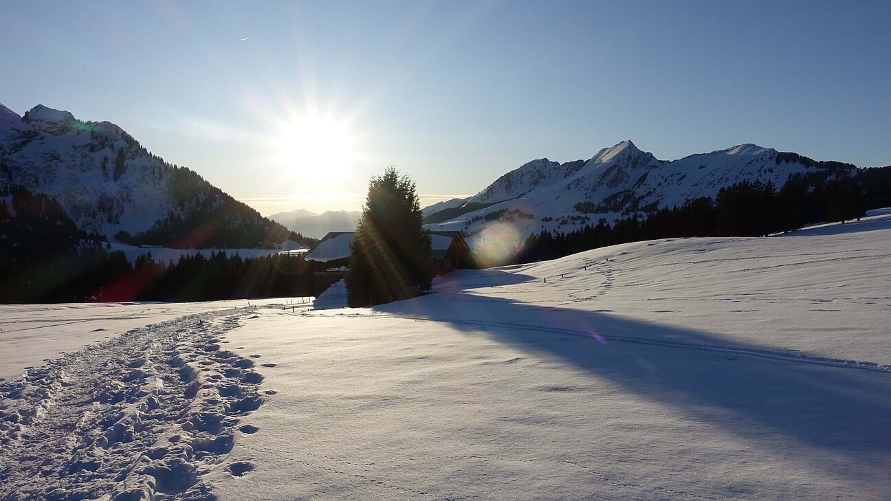 Der schneesichere Col des Mosses auf rund 1400 müm verbindet die beiden Talorte Aigle und Château d’Oex. Das Hotel auf der Passhöhe bietet einen tollen Ausgangspunkt um abwechslungsreiche Schneeschuhtouren in der herrlichen Westschweizer Voralpenlandschaft zu unternehmen.