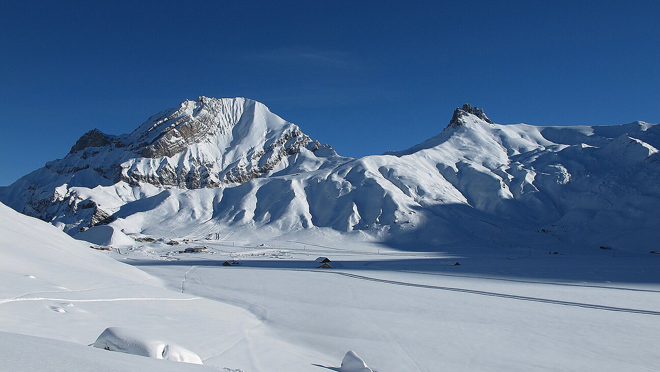 Zuhinterst im „Entschligetal“ liegt auf einer Höhe von knapp 2000 Metern im Schatten des massigen Wildstrubels die grösste Hochebene der westlichen Schweizer Alpen: die Engstligenalp. Entlang der diesen Talkessel begrenzenden Hänge steigen wir in der Märzsonne hinauf zum Aussichtsgipfel des Ammertenspitzes. An Übergang von der Voralpen zum Hochgebirge erwartet uns eine unglaubliche Aussicht!
